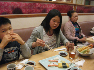 | 出発前、関空にてお寿司をぺロリ! |