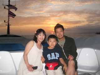 ダイヤモンドヘッドに沈む夕日も良かったです。約2時間のクルージングでした。