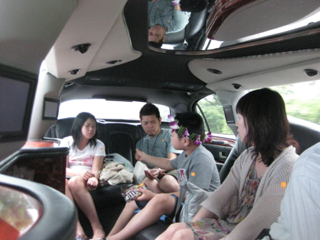 リムジンで出発!車内も広く楽しさ倍増! |