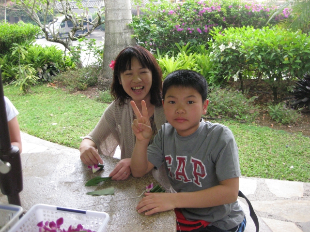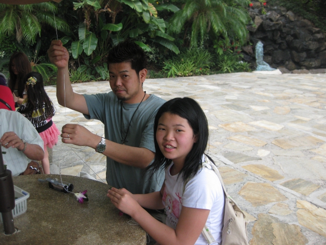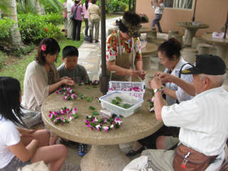 | みんなでレイ作りに挑戦! |