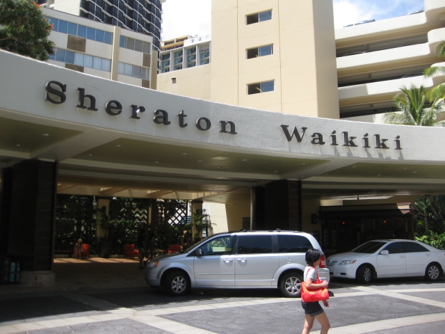 ホテルはワイキキビーチ前のシェラトンです。 |